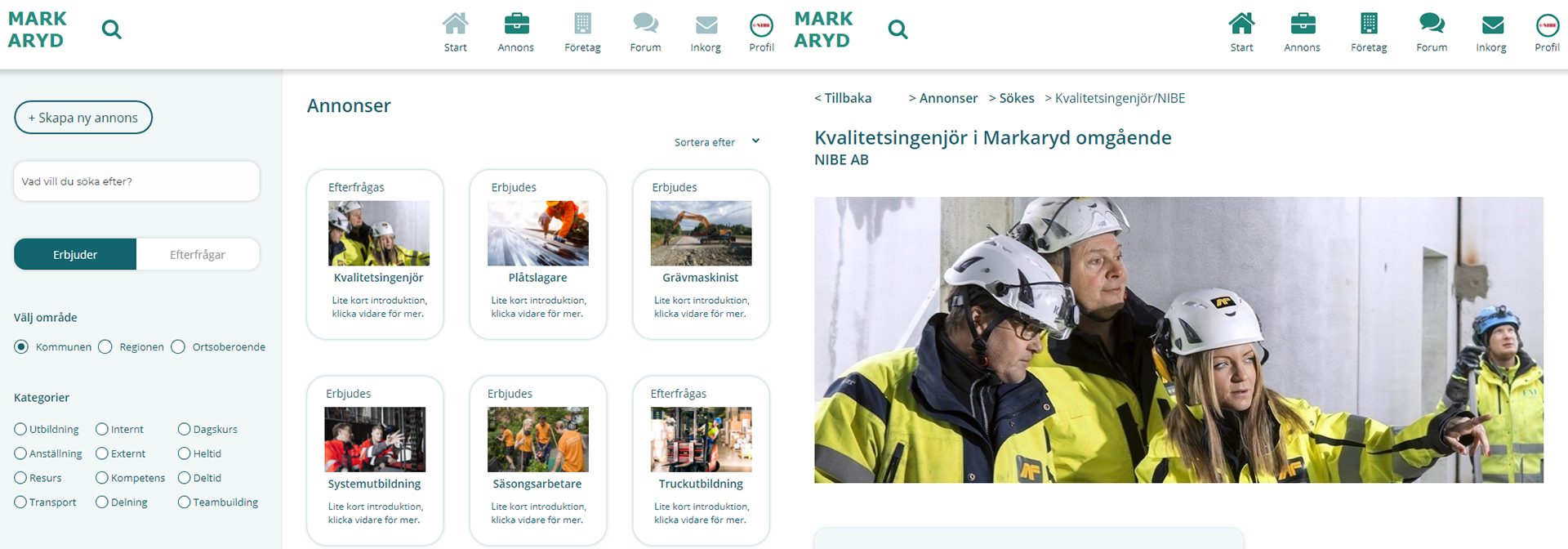Markaryd is a small locality in the south of Sweden. Urbanization and hardship with incentivizing relocation to Markaryd have been identified as major problems, causing an apparent and persistent shortage of skilled workers. At the initiative of the municipality a physical meeting hub has been built and to attract new companies to the municipality, attract a skilled labor force and develop the business community. In addition to the physical meeting space, a digital equivalent was requested.