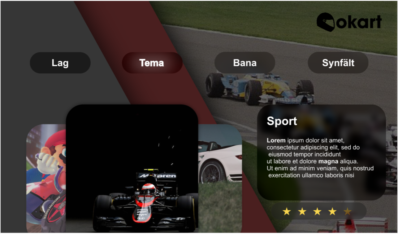 The goal of this project is to investigate how I can develop and enhance the go-kart experience to attract more visitors, mainly women,I have therefore developed a go-kart helmet that implements game elements in go-karts via AR (augmented reality. Through a new artefact that can create a more exclusive go-kart experience and thus expand the range of activities that characterize Öland, and eventually attract more tourists. To reach this goal, I have worked with a user-centered focus, both with the user and for the user, as well as with a heterogeneous perspective. This is to generate more creative and innovative solutions, to get a broader perspective on what the user is currently missing...
