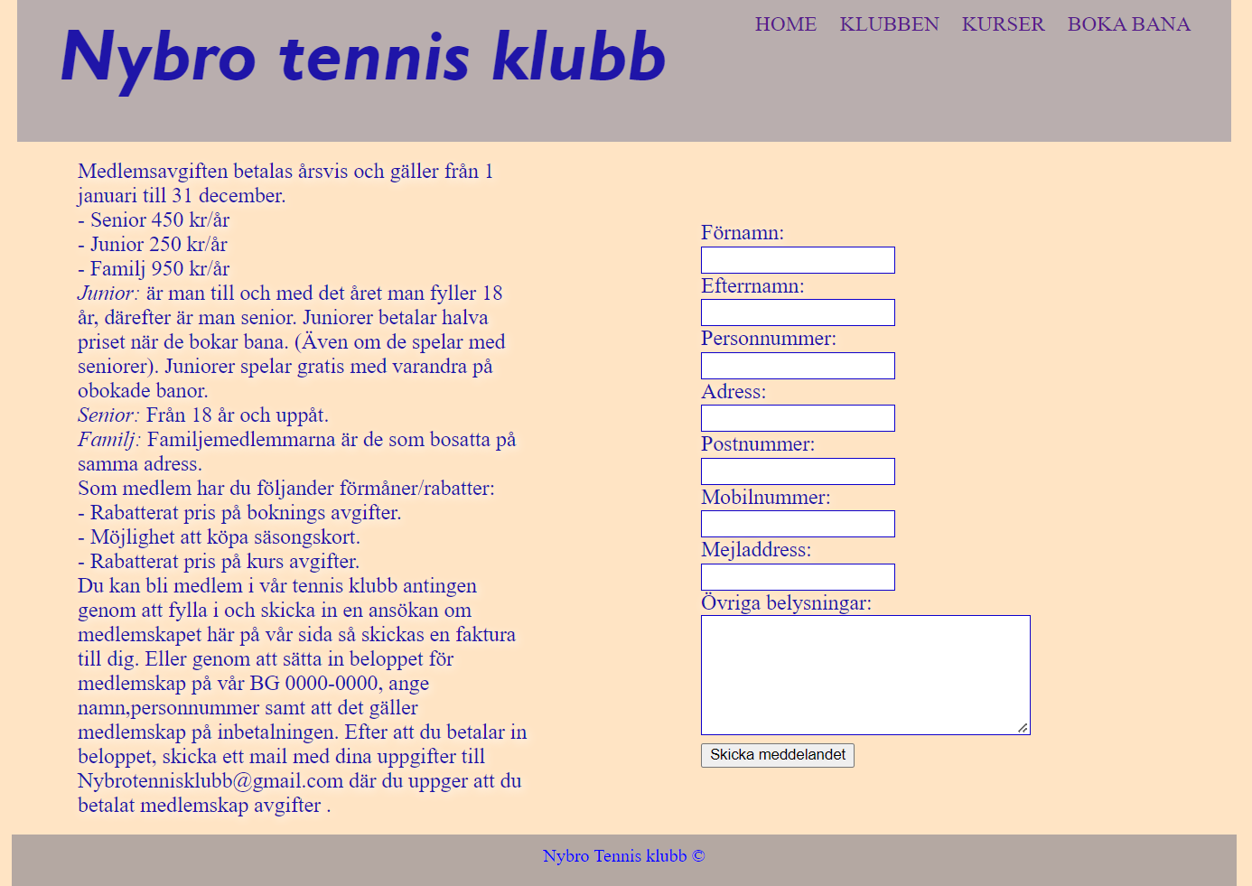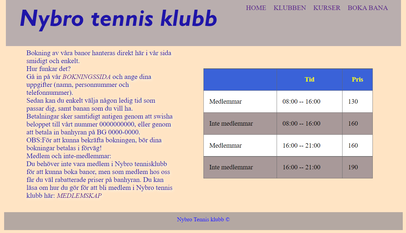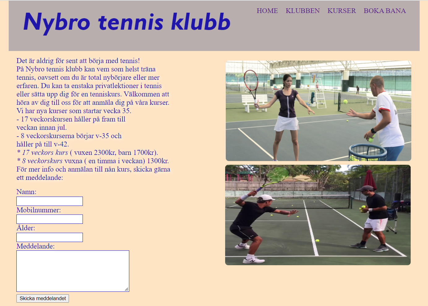 through the club's pages, the owner wants to announce and tell about the club's equipment, tennis rules, membership and available courses in the club.